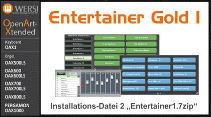 Das Klangpaket "Entertainer Gold 1" wird nicht automatisch mit der OAX-Version 2.91 installiert. Wenn Sie es testen oder freischalten möchten, muss das Klangpaket mit diesen Dateien separat installiert werden. Nach der Installation verlängert sich der Startvorgang des Instruments geringfügig (ist abhängig vom RAM-Speicher und CPU).