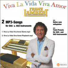 Wollten Sie immer schon einen Titel von Franz Lambert nachspielen? Kein Problem! Inhalt: 2 MP3-Songs (Demo- und Playback-Version), 4 Total-Presets für OAX-Instrumente, PDF-Noten zum ausdrucken und mitspielen, 4 Noten-Dateien (.png) zum einspeichern in OAX-Instrumente.