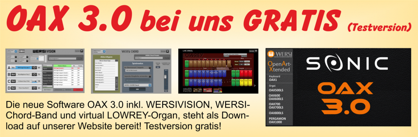 Für alle die bereits die OAX 3.0 erworben und installiert haben, können Ihre OAX 3.0-Version kostenlos updaten. Es müssen nur 2 Dateien (WersiInstall.exe / Software.7zip) heruntergeladen und installiert werden. Möchten Sie eine komplette Neuinstallation durchführen, müssen sich alle 6 Dateien auf dem USB-Stick befinden! Was Neu ist erfahren Sie HIER!