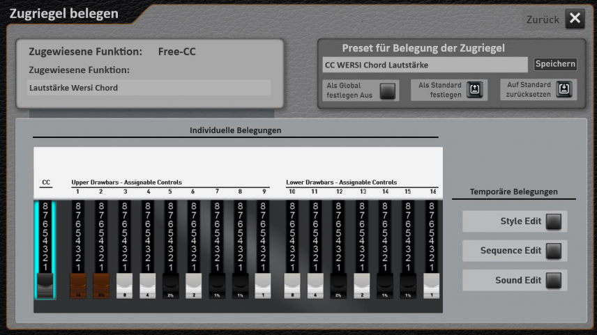 Belegung CC- und Drawbar-Zugriegel mit anderen Funktionen