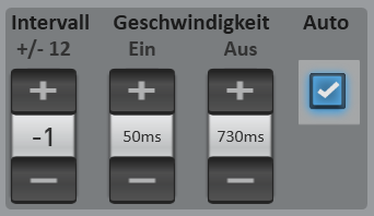 Mit der Funktion „Auto“ läuft der Glide-Effekt automatisch ab. Wird der Fußschalter gedrückt, ändert sich die Tonhöhe in der Geschwindigkeit EIN und kehrt dann automatisch mit der Geschwindigkeit AUS auf die normale Tonhöhe zurück.
