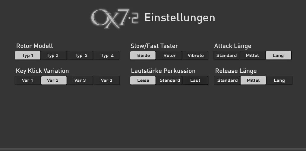 Neu dazugekommen sind vier Rotor-Typen, einstellbare Lautstärke der Perkussion, KeyClick aus vier Variationen frei wählbar und für Attack und Release können Sie aus drei Längen wählen.