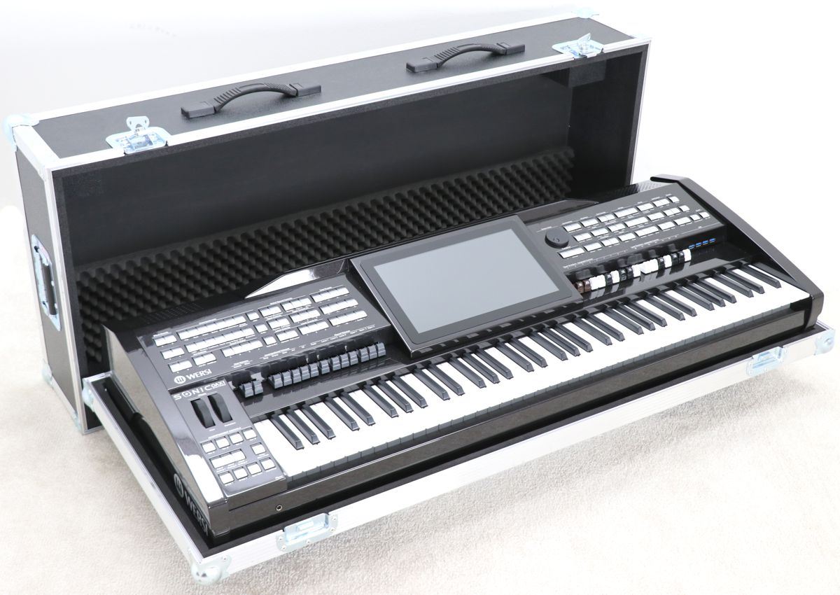 Neu im Programm ist das Flight Case für das WERSI OAX-1 Keyboard. Damit ist Ihr hochwertiges Keyboard optimal bei allen Transporten geschützt. Dazu trägt auch die hochwertige Innenauskleidung bei. Das weiche Material schützt den Lack vor Beschädigungen. Die Tragegriffe sind so positioniert, dass man das Case optimal tragen kann.