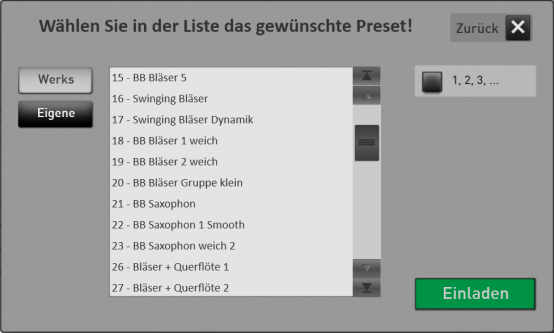 Möchten Sie direkt loslegen und die neue WERSI Chord Band in seinen vielfältigen Möglichkeiten ausprobieren, nehmen Sie am besten die Total Presets im Werksbereich.