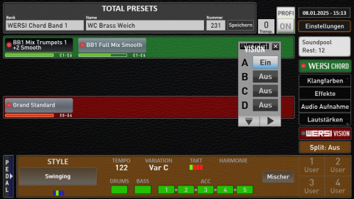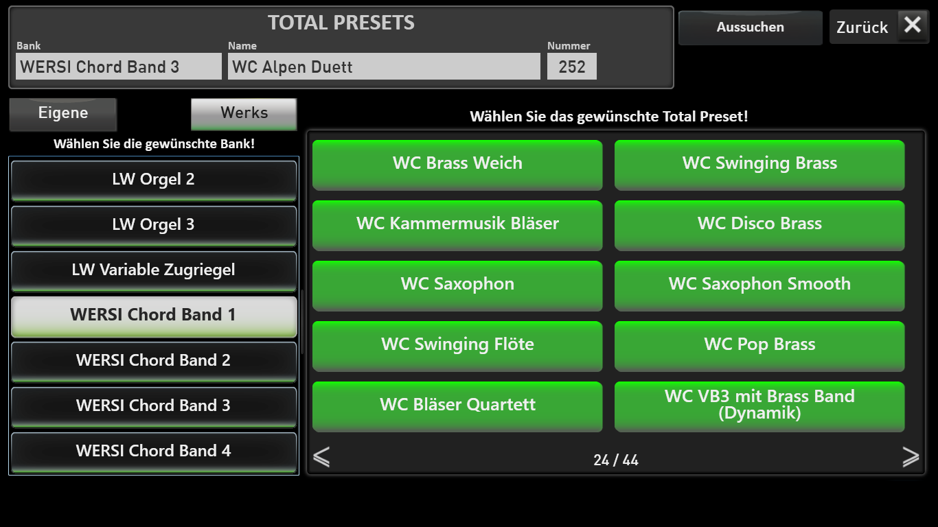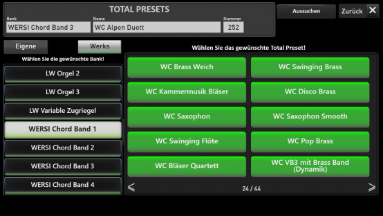 Diese finden Sie in den Total Preset Banks mit der Bezeichnung WERSI Chord Band 1 bis 4.