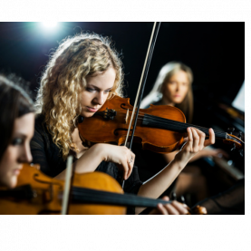 Bei einem Kammerorchester spielen die einzelnen Instrument Violinen, Violas, Celli und Bass unterschiedliche Stimmen.